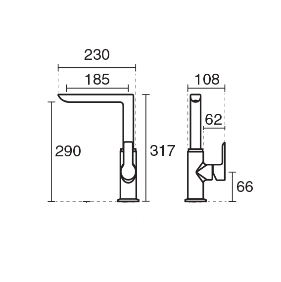 این مدل با بدنهای از آلیاژ برنج با پوشش کروم براق یا استیل مات تولید شده و مقاومت بالایی در برابر رسوب، زنگزدگی و تغییر رنگ دارد. طراحی بلند و منحنی علم شیر باعث میشود فضای کاری بیشتری روی سینک داشته باشید و شستوشوی ظروف بزرگ بسیار آسانتر شود.