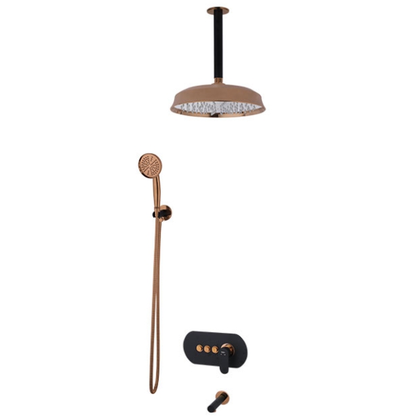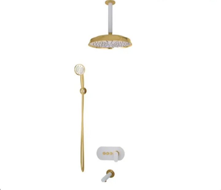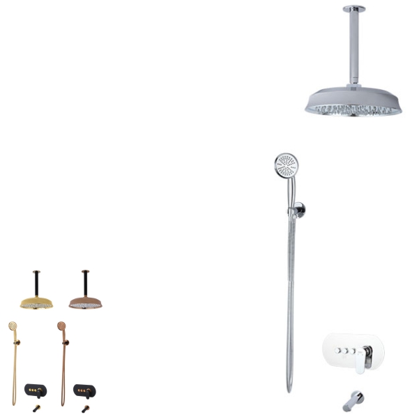 ملحقات حمام توکار: وان پر کن+پلیت+اهرم+دایورتور+سردوش متحرک+شلنگ+لوله سقفی+سردوش ثابت
